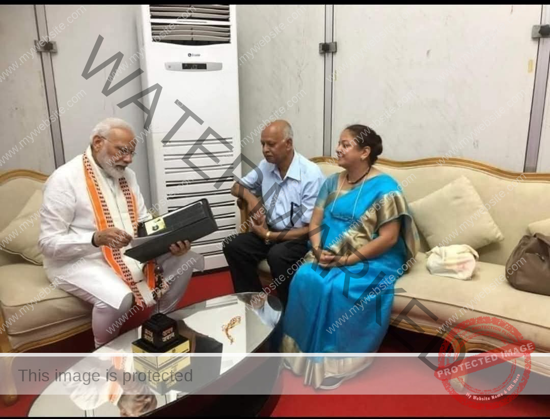 பிரதமருக்கு அருகே அமர்ந்திருப்பவர்கள் புனேவைச் சார்ந்த யோகேஷ் சித்தடே அவரது மனைவி சுமீதா சித்தடே. இருவரையும் பாராட்டுவதற்காக பிரதமர் மோதி அவர்களை அழைத்துள்ளார்.